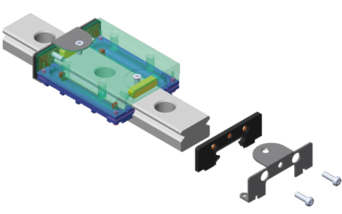 端面強化設(shè)計:采用金屬加強片,以鎖緊式設(shè)計將滑塊兩端塑膠蓋包覆住,并使用螺絲將滑座鋼體上方、側(cè)方、下方五點式鎖固,強化端蓋剛性及包覆性,以承受更快的運行速度;且加強片與滑軌間采間隙設(shè)計,使得金屬加強片亦具備刮刷片的功能。